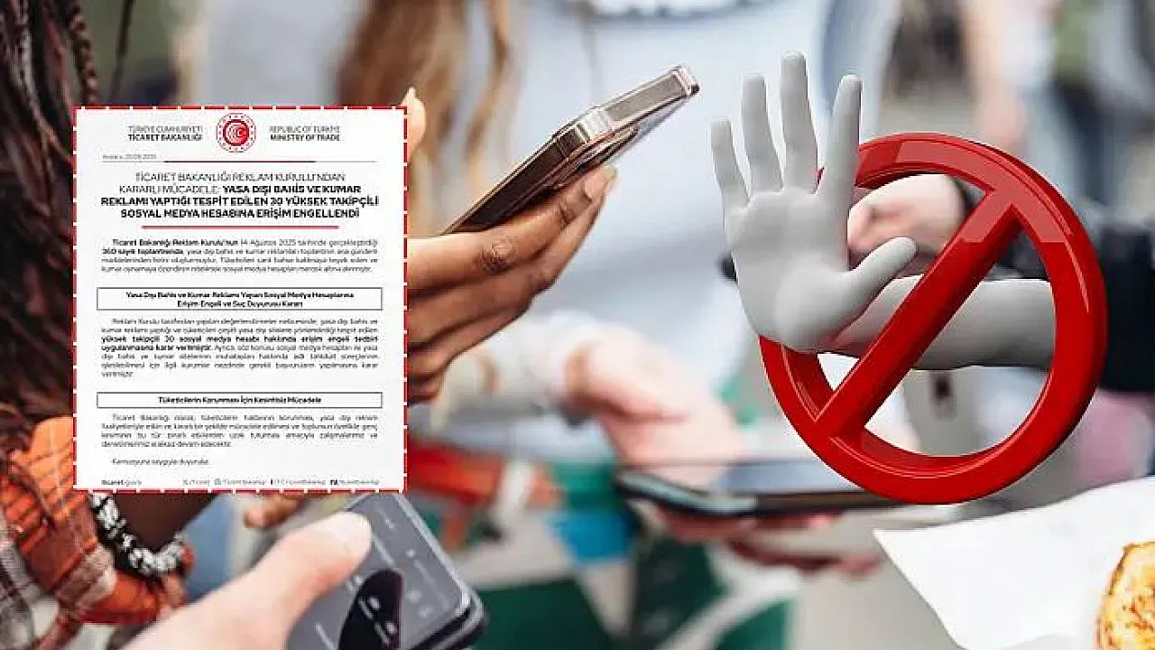 Ticaret Bakanlığı, yasa dışı bahis ve kumar reklamı yaptığı tespit edilen yüksek takipçili 30 sosyal medya hesabına erişim engeli getirildiğini duyurdu. Bakanlık, tüketicileri canlı bahse yönlendiren ve kumar oynamaya teşvik eden içeriklerin mercek altına alındığını belirtti.