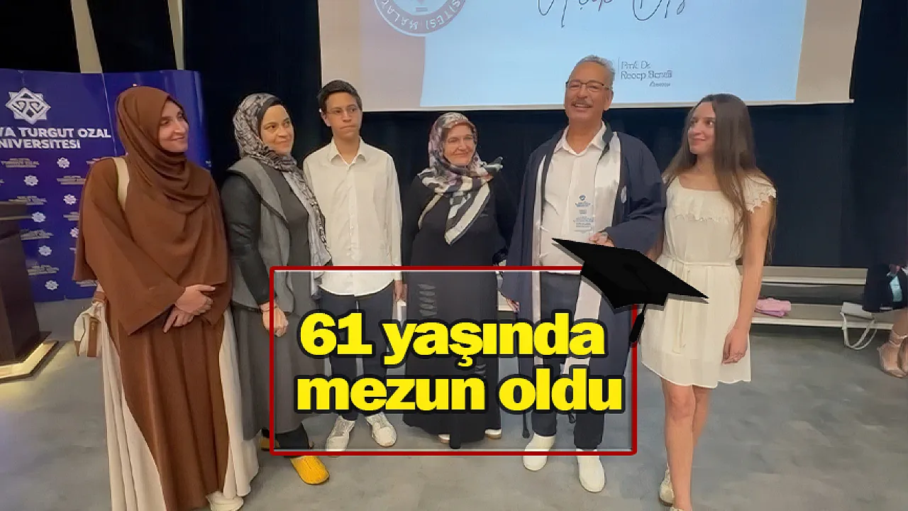 Malatya Turgut Özal Üniversitesi'nin mezuniyet törenine 61 yaşındaki Murat Esen damga vurdu. Madencilik Bölümü'nü birincilikle tamamlayan Esen, diplomasını eşi, kızları ve torunlarıyla birlikte alarak büyük alkış topladı.
