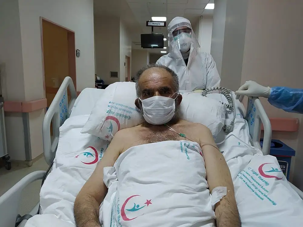 Malatya'da korona virüs salgınına yakalanan ve 20 gün solunum cihazına bağlı kalan 62 yaşındaki hasta, virüsü yenerek alkışlarla servise çıkarıldı.