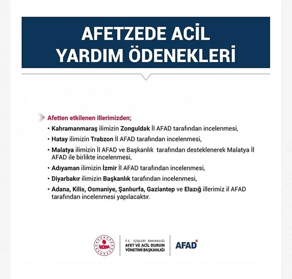 Afet ve Acil Durum Yönetimi Başkanlığı (AFAD) tarafından, afetzede yardım ödenekleri ile ilgili yapılan bilgilendirme metninde Malatya'nın afetten daha az etkilenen illerden gösterilmesine sosyal medyadan gösterilen tepkilerin ardından, İçişleri Bakanlığı tarafından düzeltme yapıldı.