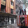 Ağır hasarlı binada yangın çıktı
