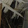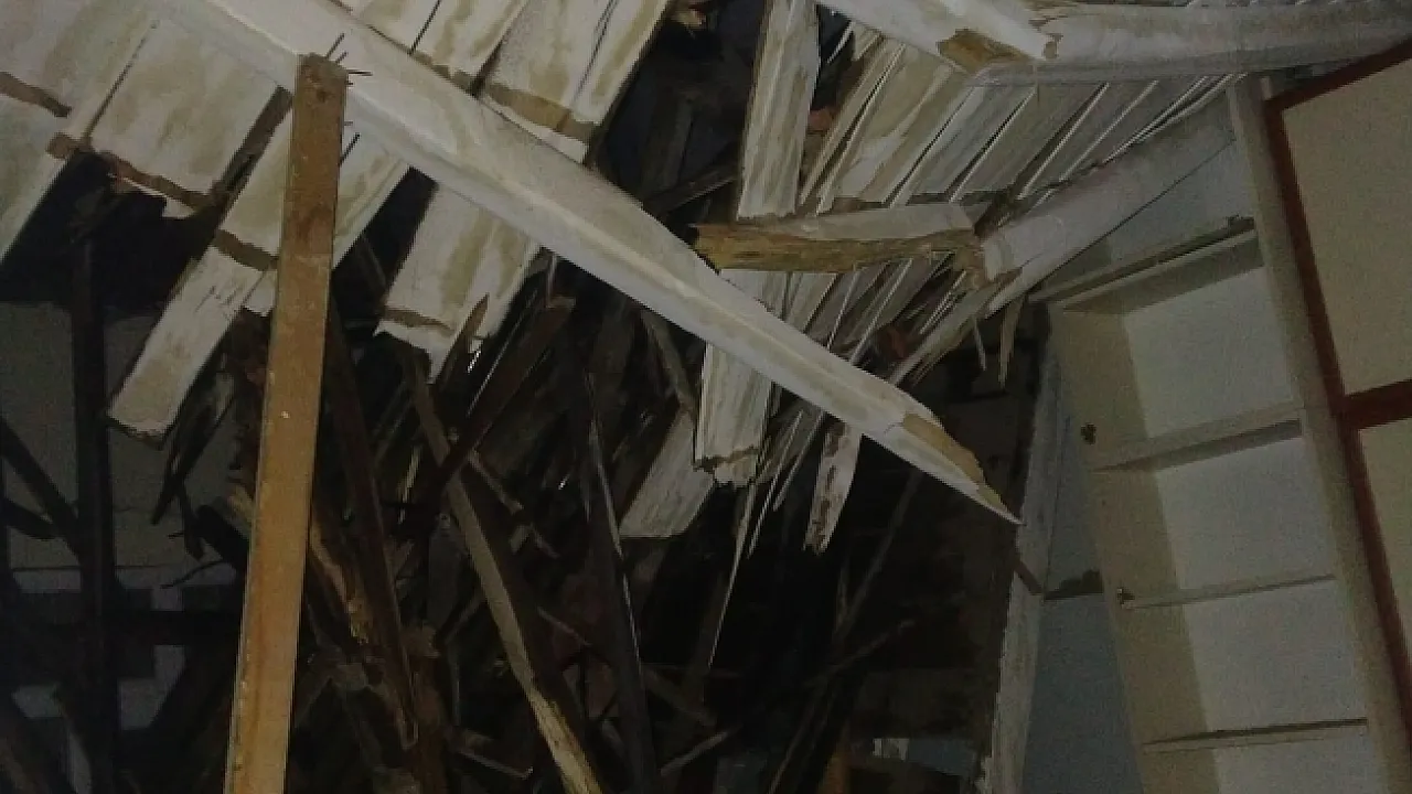 Ağır hasarlı binanın çatısı kısmen çöktü