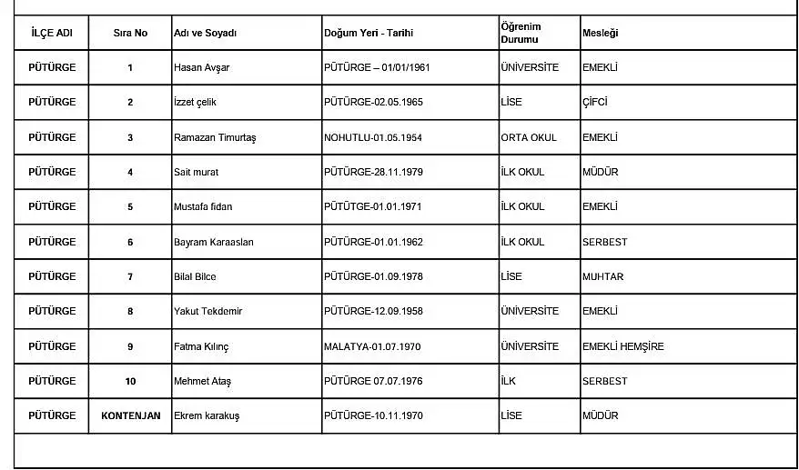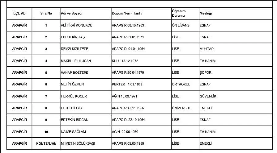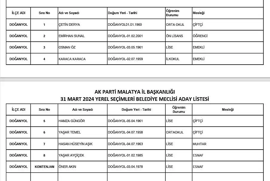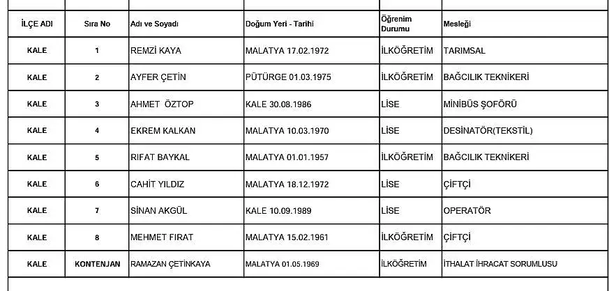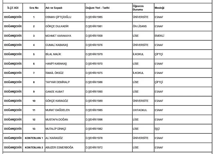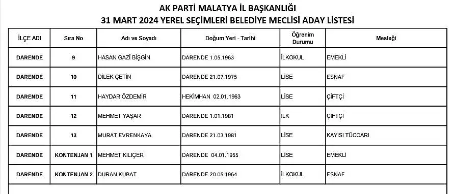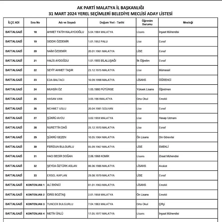 Cumhur İttifakında MHP'ye bırakılan Hekimhan ve Kuluncak dışında AK Parti'nin Malatya'daki 11 ilçesinde meclis üye adayları belli oldu.