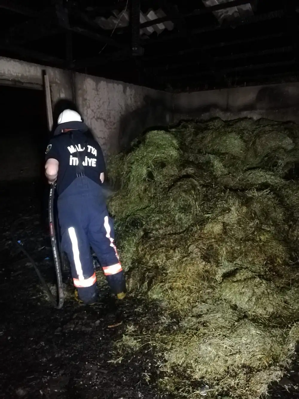 Malatya'nın Darende ilçesinde bir akaryakıt istasyonu yakınındaki ahırda yangın çıktı. Ekiplerin erken müdahalesi sonrası yangın ucuz atlatılırken, 2 ton yonca kül oldu.