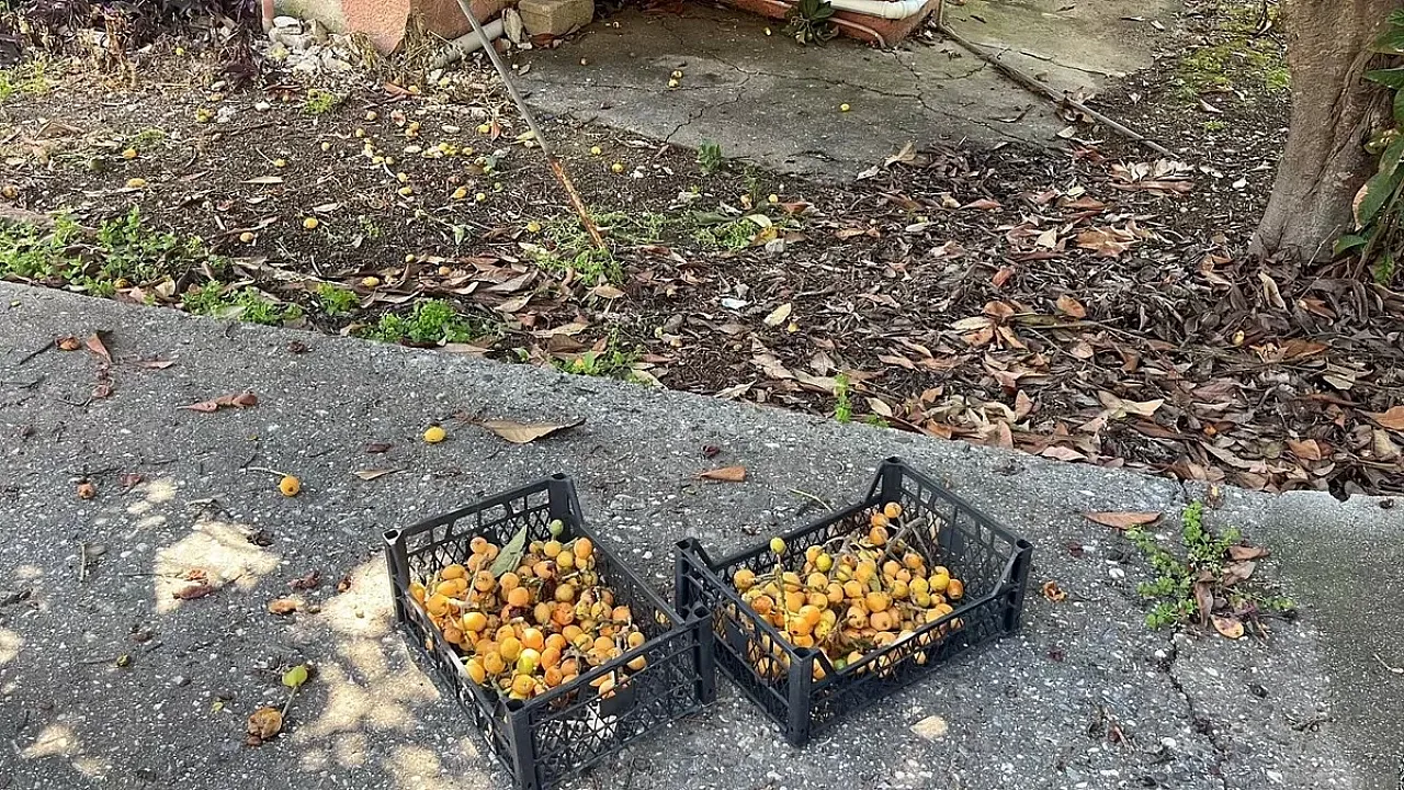- • Ziyan olmasın diye halka açılan bahçeye gelen vatandaşlar, ağaçlarda kalan meyveleri ücretsiz olarak topladı.