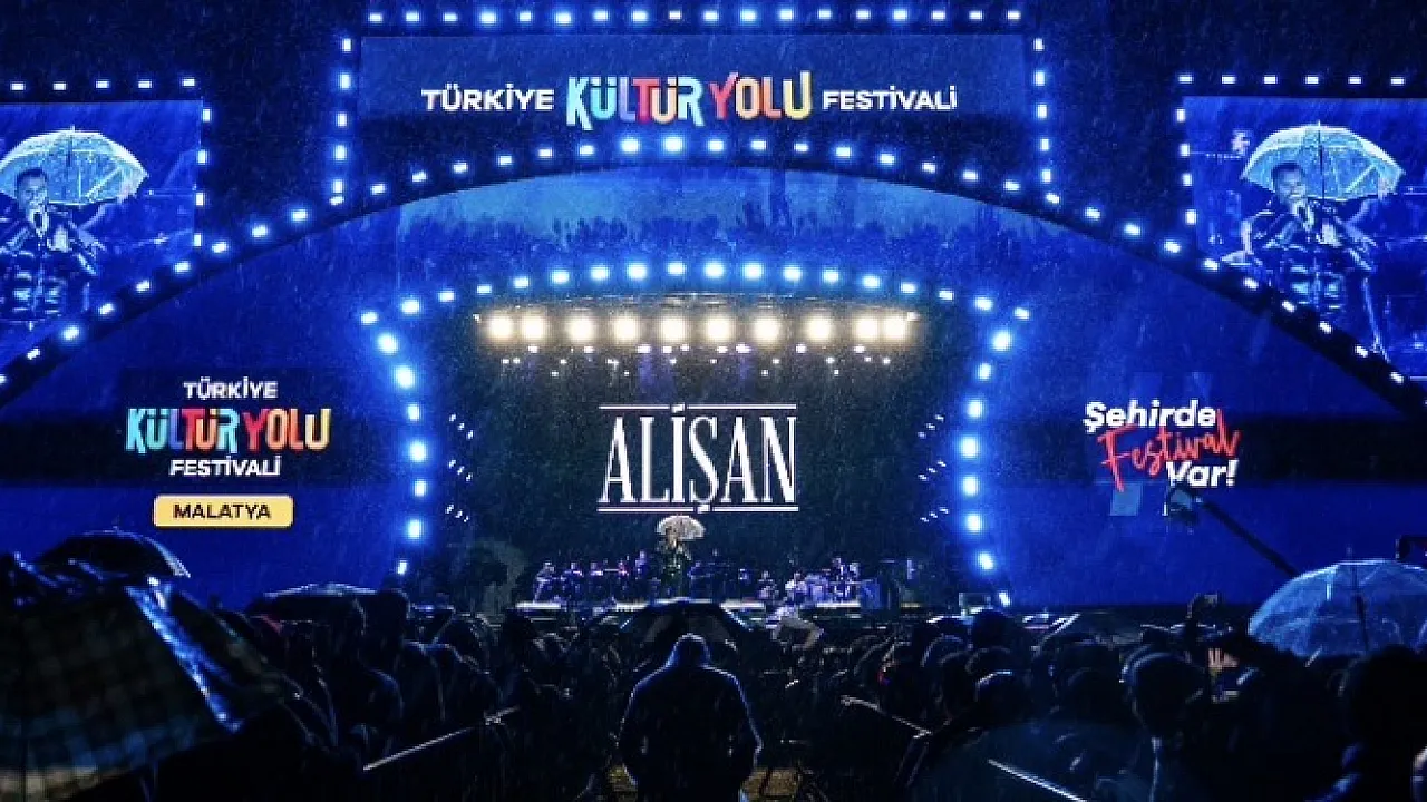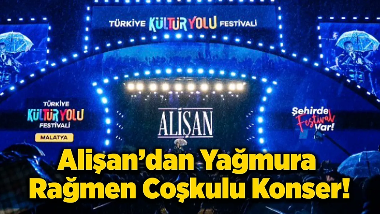 Malatya Kültür Yolu Festivali'nin son gününde sahneye çıkan ünlü sanatçı Alişan, şiddetli yağmura rağmen alanı dolduran hayranlarına unutulmaz bir gece yaşattı. Şemsiye eşliğinde gerçekleştirdiği konserinde, pop ve türkü ezgileriyle dinleyicilere coşkulu anlar sundu.