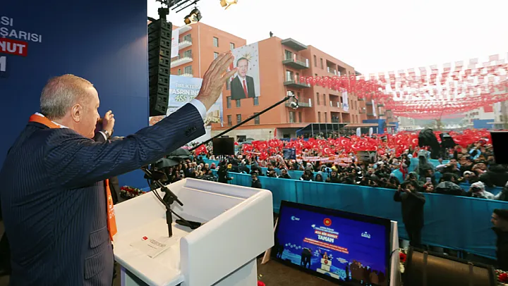 Cumhurbaşkanı Erdoğan, 6 Şubat depremlerinden etkilenen geniş coğrafyada çalışmaların kesintisiz sürdüğünü vurguladı. Adana'dan Tunceli'ye, Malatya'dan Şanlıurfa'ya kadar toplam 14 ilde yapımı biten 95 bin konut ile 9 bin 501 iş yerinin anahtarlarının hak sahiplerine ulaştırıldığını belirten Erdoğan, bu sürecin dünyada benzeri az görülen bir yeniden inşa başarısı olduğunu ifade etti.
