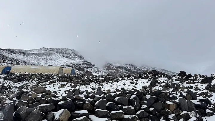 Ağrı Dağı'nda Eylülde Mevsimin İlk Karı Yağdı! Zirveler Beyaza Büründü