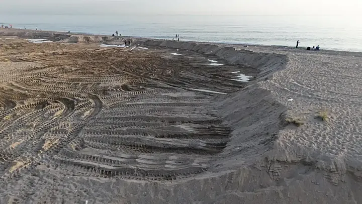 Manavgat'ın eşsiz kıyı şeridi, kum hırsızları nedeniyle ciddi bir çevresel tehdit altında. Bölgede yapılan incelemelerde sahil hattının birçok noktasında derin çukurların oluştuğu, doğal kıyı çizgisinin bozulduğu ve ekosistemin zarar gördüğü tespit edildi. Dronla kaydedilen görüntülerde, kumların büyük çapta alındığı bölümlerin doğallıktan tamamen uzaklaştığı, sahil yüzeyinin yer yer çukurlaşarak düzensiz bir görünüm aldığı dikkati çekti.