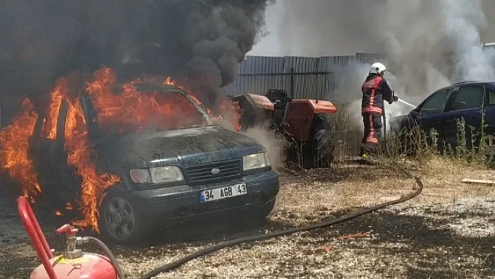 Temizlik için otları ateşe verdiler, araçlar cayır cayır yandı.