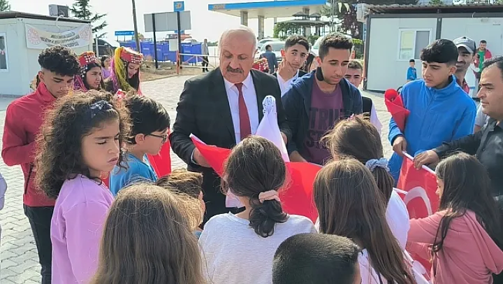 Doğanşehir Belediye Başkanı Durali Zelyurt , Cumhuriyet'in 100. yıl dönümünü nedeniyle düzenlenen programda çocuklara bayrak ve balon dağıttı.