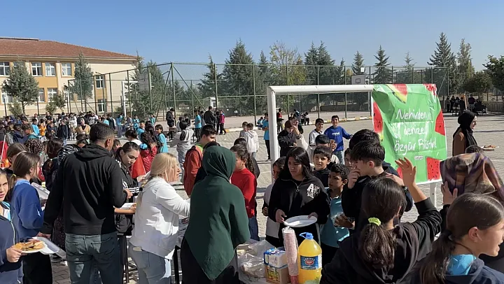 Malatya'nın Yeşilyurt ilçesindeki Biruni Ortaokulu öğrencileri, Gazze'deki ihtiyaç sahiplerine destek olmak amacıyla okul bahçesinde kermes düzenledi. Etkinlikten elde edilecek gelir, mağdur çocuklara ulaştırılacak.