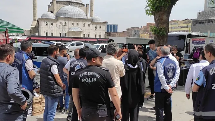 Çarşı merkezinde kaldırımlardaki tezgahlar kaldırılıyor