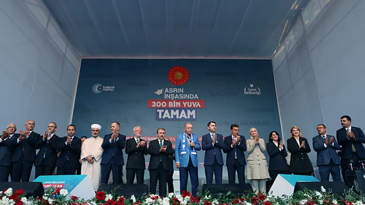 Cumhurbaşkanı Recep Tayyip Erdoğan, Malatya'da düzenlenen 'Asrın İnşasında 300 Bin Yuva Tamam' başlıklı toplu açılış ve anahtar teslim töreninde konuştu. Erdoğan, 6 Şubat depremlerinin ardından yürütülen konut seferberliğinde 300 bininci konutun teslim edildiğini belirterek, 'Deprem turistlerini bir kez daha hüsrana uğratıyoruz' dedi.
