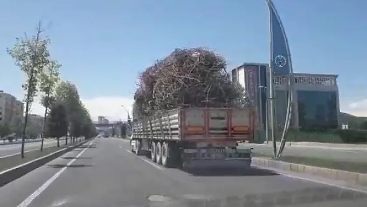 Malatya-Ankara karayolu üzerinde kasasından taşan demirlerle seyir halinde olan ve bir süre sonra gözden kaybolan kamyon, bir vatandaşın cep telefonu kamerasına yansıdı.