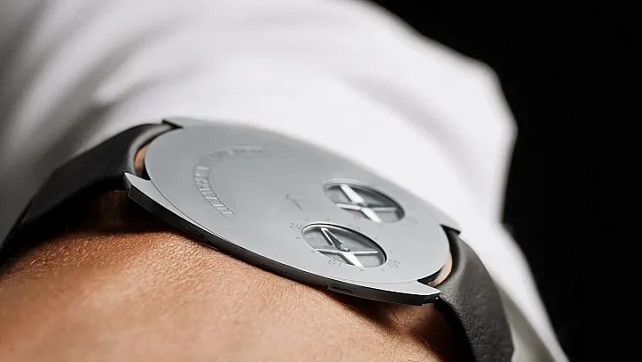 Saatin tasarımında yer alan saat ve dakika göstergelerinin konumu ise dikkat çeken bir görsel oluşturuyor. Kadranın alt kısmındaki marka logosuyla birleşen düzen, hafifçe gülümseyen bir yüzü andıran bir görünüm sunuyor. Bu tasarım dili, Chaykin'in ünlü Wristmons koleksiyonundaki karakteristik çizgileri de hatırlatıyor.