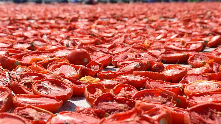 Domates üretiminde büyük bir iş gücü gerekiyor. İlkbahar döneminde yaklaşık 300 kişiyle başlayan çalışmalar, hasat zamanı geldiğinde 600 işçinin katılımıyla devam ediyor. İşçiler tarladan topladıkları domatesleri makine ve bıçaklarla ikiye bölüyor, ardından tuzlayarak güneşin altında kurumaya bırakıyor. Kurutma sürecinin ardından domatesler, paketlenip hem Türkiye pazarına hem de yurt dışına gönderiliyor. Üreticiler, organik şekilde ve ilaç kullanılmadan yetiştirilen domateslerin tamamen doğal yöntemlerle sofralara ulaştırıldığını belirtiyor.