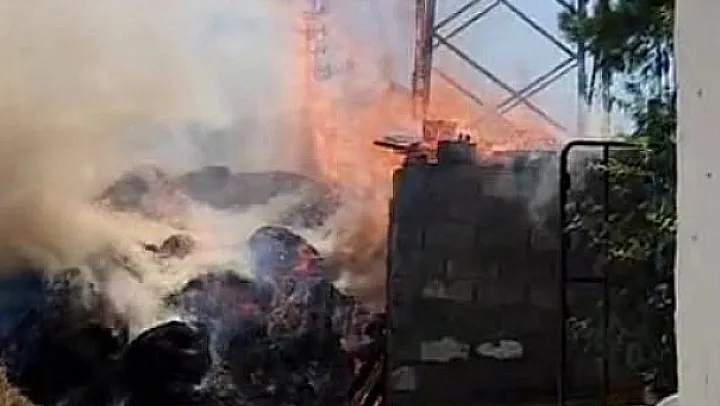 Malatya'nın Battalgazi ilçesinde elektrik direğinden kopan kablo, bir odunluğun üzerine düşerek yangına neden oldu.