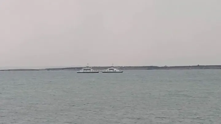 İçinde yolcu ve araçların bulunduğu feribot, rüzgarın etkisiyle sürüklenerek açıldı. Bu sırada başka bir feribot, su üstünde kapağını diğer feribotun içerisine açarak yolcu ve araçları tahliye edip iskeleye döndü.