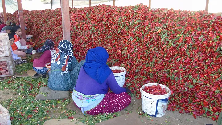 Türkiye'nin önemli sofralık kırmızı biber üretim merkezlerinden Gaziantep'in İslahiye ilçesinde 2025–2026 sezonu hasadı başladı. 40 dereceyi bulan sıcaklıkta tarlaya çıkan üreticiler ve mevsimlik işçiler, bu yıl 43 bin 200 tonluk rekolte hedefiyle yoğun mesai yürütüyor.