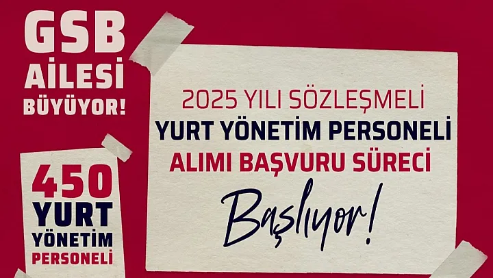 Gençlik ve Spor Bakanlığı, taşra teşkilatına bağlı yurt müdürlüklerinde istihdam edilmek üzere sözleşmeli yurt yönetim personeli alımı gerçekleştireceğini duyurdu. Bakanlık açıklamasına göre, alımlar 657 sayılı Devlet Memurları Kanunu'nun 4/B maddesi kapsamında yapılacak.