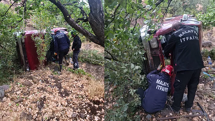 Malatya'nın Hekimhan ilçesinde meydana gelen trafik kazasında, yağış nedeniyle kayganlaşan yol sürücünün kontrolünü kaybetmesine neden oldu. Pikap tipi araç şarampole düştü, iki kişi yaralandı.