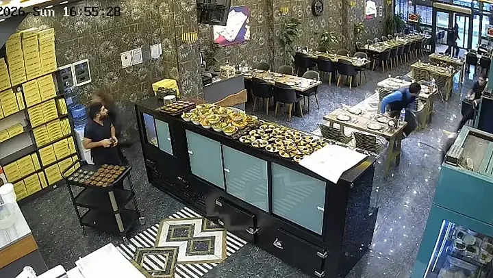 Tavanın çökme anı ise iş yerinin güvenlik sistemine anbean yansıdı. Görüntülerde, personelin günlük rutin işlerini yaptığı sırada tavanın aniden aşağı indiği ve çalışanların panikle sağa sola kaçışarak enkazın altında kalmaktan kurtuldukları görülüyor. Olayın ardından işletme sahipleri ve personel, enkaza dönen tavan parçalarını temizlemek için çalışma başlattı.