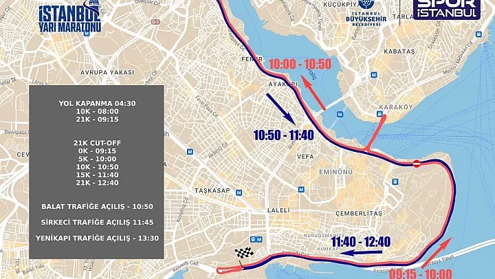 Valilik tarafından yapılan bilgilendirmeye göre bazı yollar sabah 08.00 itibarıyla, bazıları ise gece yarısından itibaren trafiğe kapatılacak. 08.00'den etkinlik bitimine kadar kapalı kalacak yollar arasında Abay Caddesi ve Demirhane Caddesi bulunuyor. 00.00'dan itibaren kapatılacak diğer yollar ise Zübeyde Hanım Caddesi, Prof. Dr. Muammer Aksoy Caddesi, Semiha Şakir Caddesi, Rauf Denktaş Caddesi, Yunus Emre Caddesi, Seyitnizam Caddesi, Asım Kazancıgil Caddesi, Zakirbaşı Sokak, Balıklı Kazlıçeşme Yolu Caddesi, İmamhatip Yolu Sokak, Balıklı Silivrikapı Yolu Sokak, 40. Sokak, 246. Sokak, Çinoğlu Çıkmazı Sokak, Belgradkapı Caddesi ve Demirhane Caddesi olarak açıklandı. Etkinlik süresince bu yolların tamamında araç trafiği geçici olarak durdurulacak.