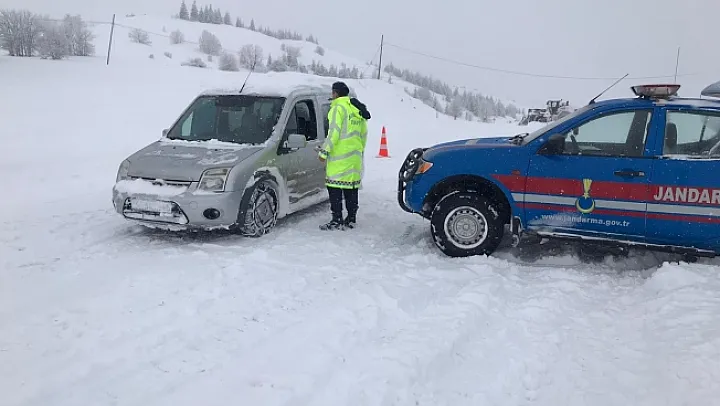 Jandarma ekipleri soğuk hava şartlarında karlı ve buzlu yollarda güvenli bir trafik ortamının sağlanması için kış lastiği denetimi yoğunlaştırıldı.