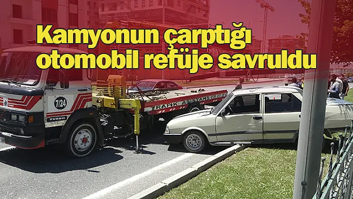 Kamyonun çarptığı otomobil refüje savruldu