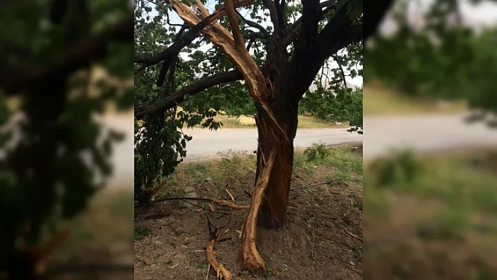 Malatya'nın Darende İlçesi'nde kayısı bahçesine düşen yıldırım bazı ağaçlara zarar verdi.