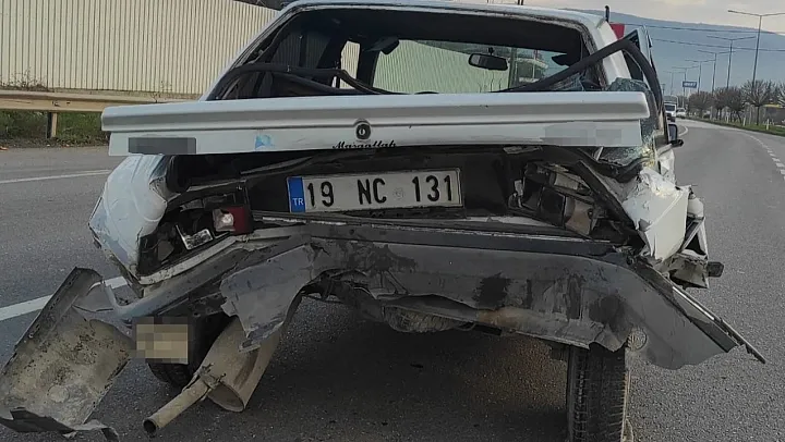 Amasya'da kırmızı ışıkta durmakta olan bir otomobile, arkasından hızla gelen başka bir araç çarptı.
