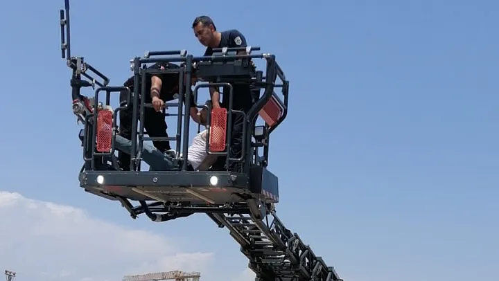 Malatya'nın Yeşilyurt ilçesinde bir inşaat şantiyesinde çalışan kule vinç operatörü, yaklaşık 30 metre yüksekte fenalaşınca imdadına itfaiye ekipleri yetişti.