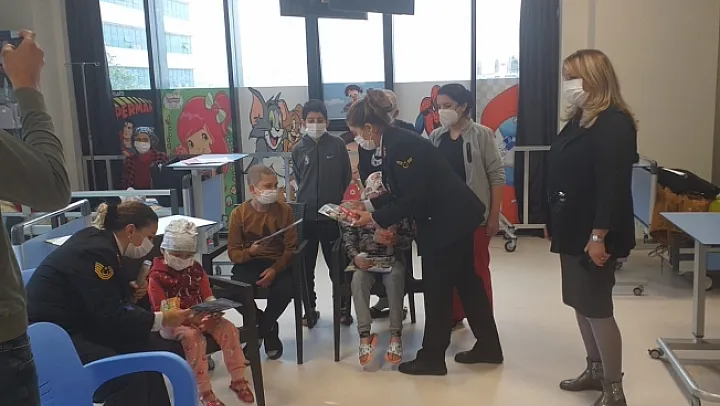 Malatya Jandarma Komutanlığı kadın görevlileri, 2-8 Kasım tarihleri arasındaki Lösemili Çocuklar Haftası nedeniyle Malatya İnönü Üniversitesi Turgut Özal Tıp Merkezi'nde tedavi gören lösemili çocukları ziyaret etti.