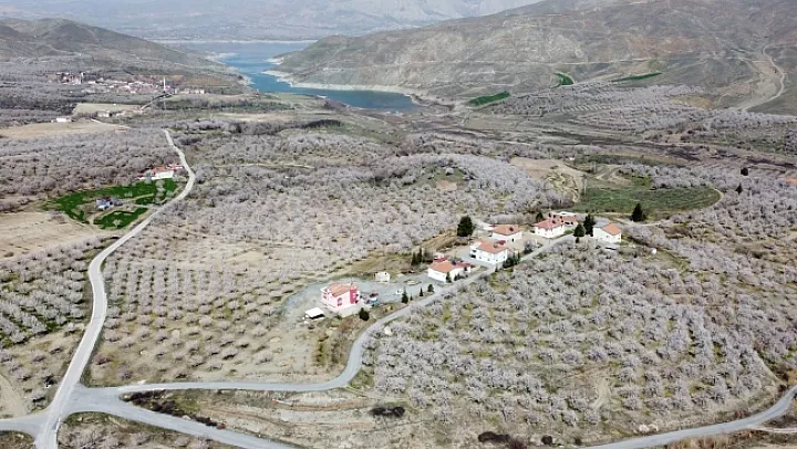 Dünya kayısı başkenti Malatya'da kayısı ağaçlarının çiçek açması ile her yıl olduğu gibi bu yıl da tabloları aratmayan görüntüler ortaya çıktı. Beyaz gelinliğini giyen şehirdeki görsel şölen havadan görüntülendi.