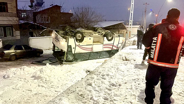 Malatya Melekbaba Mahallesi'nde buzlanma nedeniyle kontrolden çıkan işçi servisi, karşı şeride geçerek alt yola devrildi. Kazada servis aracında bulunan 9 işçi hafif şekilde yaralandı.