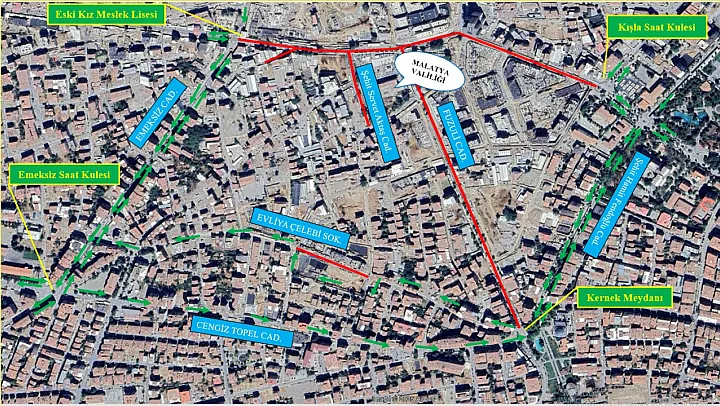 Valilik açıklamasına göre, projenin güvenli ve planlı şekilde yürütülmesi için bazı ana arterler geçici olarak araç trafiğine kapatılacak. İnönü Caddesi Eski Kız Meslek Lisesi Kavşağı ile Sivas Caddesi–Atatürk Caddesi kesişimi (Kışla Saat Kulesi) arası, Fuzuli Caddesi ve Şehit Servet Aktaş Caddesi 3 Ocak 2026 tarihinden itibaren ikinci bir duyuruya kadar kapalı olacak.