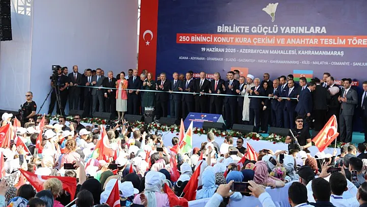Azerbaycan tarafından Kahramanmaraş'ta inşa edilen konutların kura ve anahtar teslim töreni, Recep Tayyip Erdoğan ve İlham Aliyev'in katılımıyla gerçekleştirildi