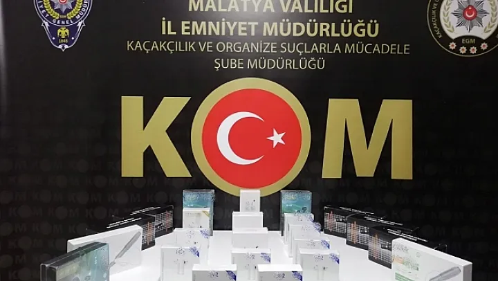 Malatya il Emniyet Müdürlüğü İl Emniyet Müdürlüğü Kaçakçılık ve Organize Suçlarla Mücadele (KOM) ekiplerince '5607 SKM' çerçevesinde yapılan çalışmalarda 170 kilogram bandrolsüz tütün, 27 bin 800 dal makaron, 17 litre el yapımı sahte alkol, 176 adet cinsel içerikli ürün, 9 adet gümrük kaçağı parfüm, 6 adet elektronik nargile, 1 adet elektronik sigara dolum makinesi, 16 adet kablosuz kulaklık ile 7 adet gümrük kaçağı çizim kalemi ele geçirildi.