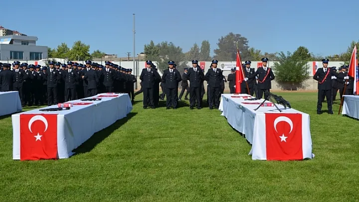 Konuşmaların ardından eğitimlerini başarıyla tamamlayan 383 öğrenci yemin ederek mesleğe ilk adımlarını attılar. Hep birlikte kep fırlatan polis adaylarının bu sevinçlerine aileleri de eşlik etti.