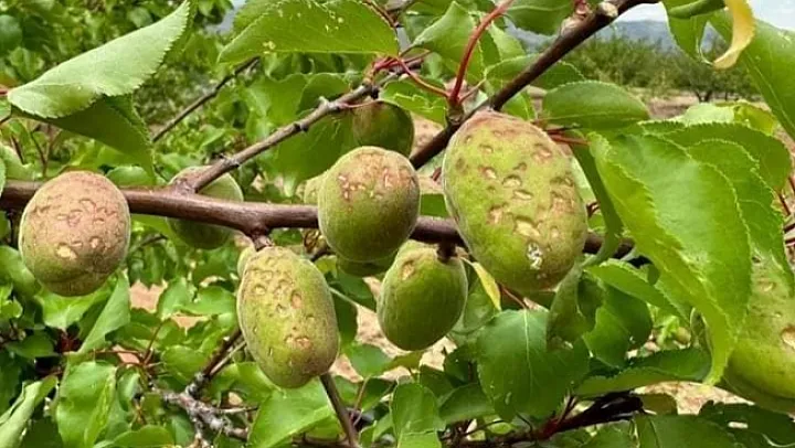Malatya'da, bir süredir etkili olan sağanak yağış kırsal bölgelerde yer yer dolu yağışına döndü. Yağışlarda çağla döneminde olan kayısı bahçeleri zarar gördü.