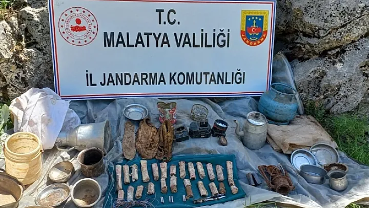 Malatya'da jandarma ekipleri tarafından bir mağarada PKK/KCK terör örgütüne ait çok sayıda patlayıcı ve mühimmat ele geçirildi. Ele geçirilen patlayıcılar imha edildi.