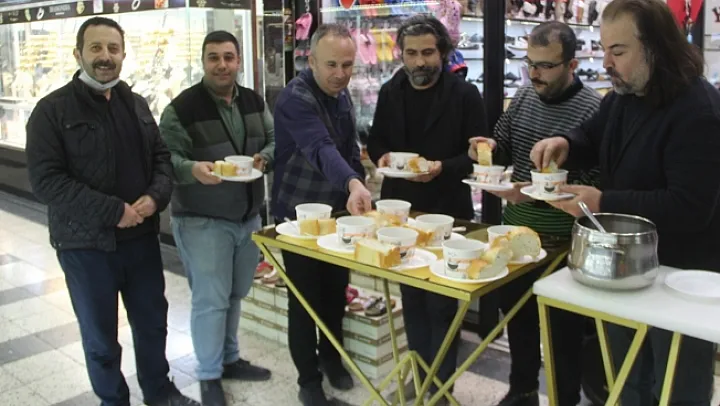 Etkinlikte konuşan kısa bir açıklama yapan esnaf Geçen ,' Şehitlerimizin mekanı cennet olsun. Bizlere vatan bıraktılar. Savaşta Mehmetçik yediği buğday çorbası, üzüm hoşafı ve bir parça ekmekle vatanı korudu. Bizlerde esnaf olarak şehitlerimizi rahmetle anıyoruz mekanlar cennet olsun ' diye konuştu
