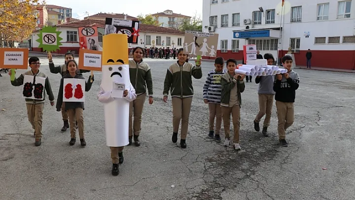 Etkinlik hakkında bilgi veren Feyzullah Taşkınsoy Ortaokulu Müdürü Aziz Elbir, 'Öğrencilerimiz ile birlikte sigaranın insan sağlığına verdiği zarar ile ilgili vatandaşları bilgilendirmek, toplumu aydınlatmak amacı ile bir etkinlik yaptık. Emeği geçen arkadaşlarımıza teşekkür ediyoruz' diye konuştu.