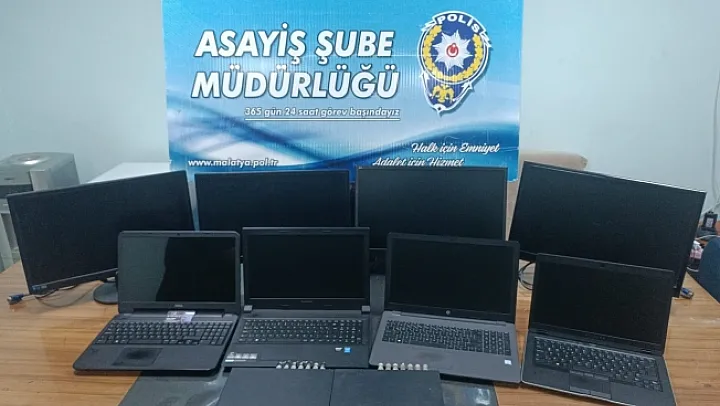 Malatya'da girdiği 6 okulda çok sayıda bilgisayar ve kayıt cihazı çalan zanlı polis tarafında yakalanarak gözaltına alındı. Zanlı işlemlerinin ardından tutuklandı.