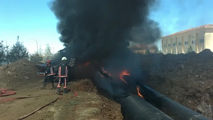 Malatya Organize Sanayi Bölgesi'nde (OSB) bir işletmede altyapı çalışması sırasında yangın çıktı. Kısa sürede büyüyen yangın itfaiyenin zamanında müdahalesi ile söndürüldü.