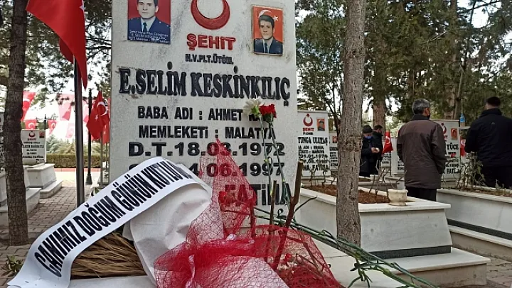 Evlatlarının doğum gününü mezarı başında kutlayan aile nedeniyle duygusal anlar yaşayan Malatya Valisi Aydın Baruş ve beraberindeki kent protokolü ise Şehit Selim Keskinkılıç'ın mezarına karanfil bırakarak, şehidin 50. doğum yıldönümünü kutladı.
