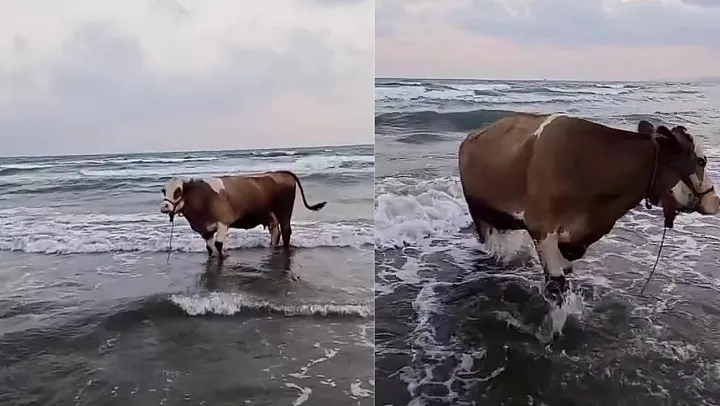 Erzin ilçesi Burnaz sahilinde kameralara ilginç bir görüntü yansıdı. Sahibinden kaçan bir inek, sıcak havadan bunalarak denize girdi. Bir süre boyunca denizde gezinen inek, çevredeki vatandaşların dikkatini çekti.