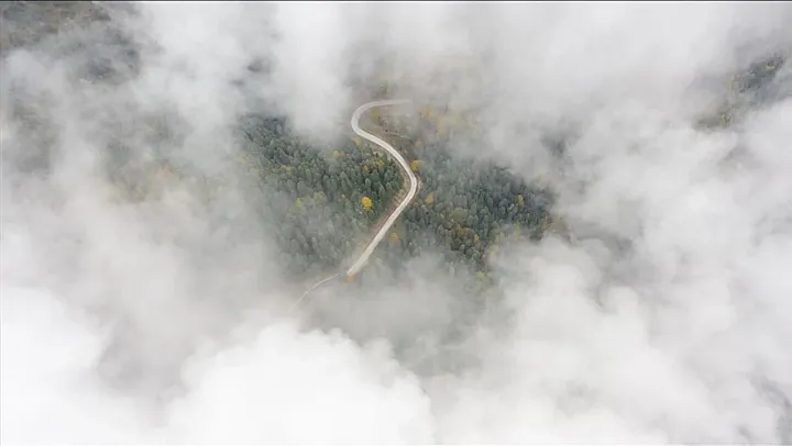 Sis Bulutları Altında Büyüleyici Manzara: Yedigöller Yolu Dronla Görüntülendi