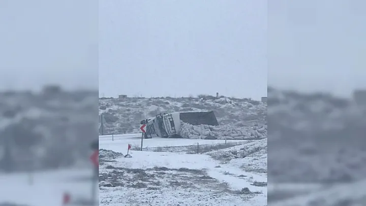 Malatya-Sivas karayolunda kar nedeniyle kayganlaşan yolda devrilen tır yolu trafiğe kapatırken, kazada yaralanan olmadı.